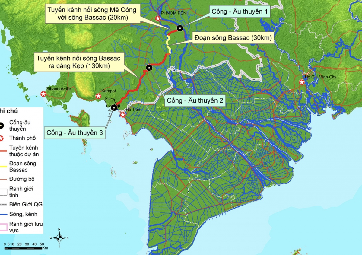 Thông tin với VOV.VN, bà Nguyễn Thị Thu Linh - Chánh Văn phòng Thường trực Ủy ban sông Mê Kông Việt Nam cho biết, Dự án kênh đào Funan Techo dự kiến sẽ được nâng cấp và cải tạo 180km tuyến kênh/sông, bao gồm: Đoạn thứ nhất (chiều dài khoảng 20km) nối sông Mê Kông với sông Bassac; Đoạn thứ 2 tiếp tục chạy dọc theo sông Bassac đến điểm kết nối với kênh giao thông thủy từ sông Bassac ra cảng Kẹp (chiều dài khoảng 30km); và Đoạn thứ ba dài 130km nối sông Bassac (tại điểm cách biên giới Việt Nam - Campuchia khoảng 20km) với cảng Kẹp của Campuchia.