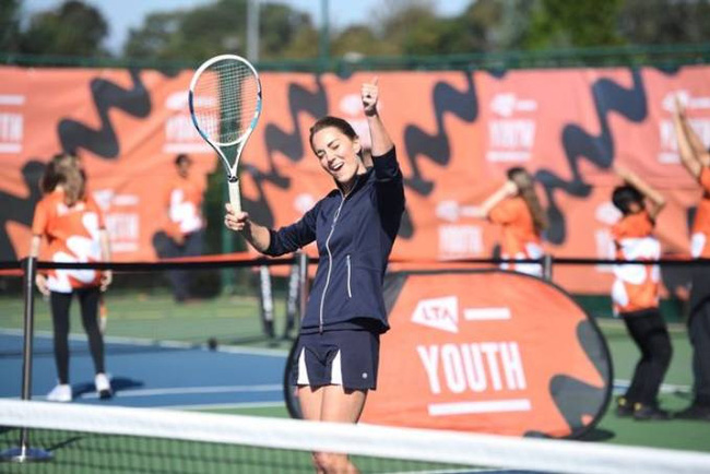 Chiều 24/9, bà mẹ 3 con xuất hiện tại Trung tâm Quần vợt Quốc gia của Hiệp hội Quần vợt Sân cỏ London chúc mừng Emma Raducanu, tay vợt 18 tuổi vừa vô địch giải Quần vợt Mỹ Mở rộng ở nội dung đơn nữ. Tại đây, Công nương Kate đã có dịp trổ tài khả năng chơi quần vợt của mình trong trận đấu giao hữu.