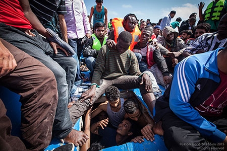 Những người di cư được cứu gần tàu cứu hộ Phoenix của MOAS do triệu phú Christopher Catrambone đầu tư. Ảnh: MOAS |