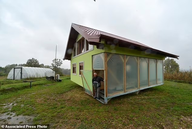 Và thế là ông Vojin đã tự tay thiết kế và xây dựng ngôi nhà xoay của mình. Nó được gắn trên một cột bê tông và quay bằng động cơ điện, bánh xe của một phương tiện vận tải quân sự cũ.