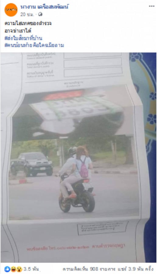 Tình huống dở khóc dở cười này là câu chuyện buồn của một thanh niên Thái Lan khi vô tình để vợ nhận được thư báo phạm lỗi giao thông gửi về nhà.