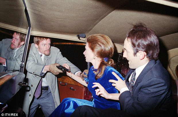 Hàng rào bảo vệ 3 người đàn ông đều bị đánh gục nhanh chóng trong chốc lát chỉ bởi một người. Tên Ian Ball tiến lại được gần xe của Công chúa, túm lấy tay cô tính lôi ra khỏi xe thì Mark Phillips cố níu vợ mình lại.