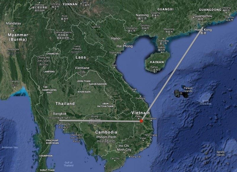 Chiếc máy bay mang số hiệu CX700Z cất cánh từ sân bay quốc tế Don Muang, Bangkok vào lúc 11:55. Nó khởi hành từ Singapore vào sáng sớm, quá cảnh tại Thailand và đang trên đường đi tới Hong Kong. Máy bay dự kiến sẽ bay ngang qua khu vực Tây Nguyên của Việt Nam trước khi tiến về biển Đông.