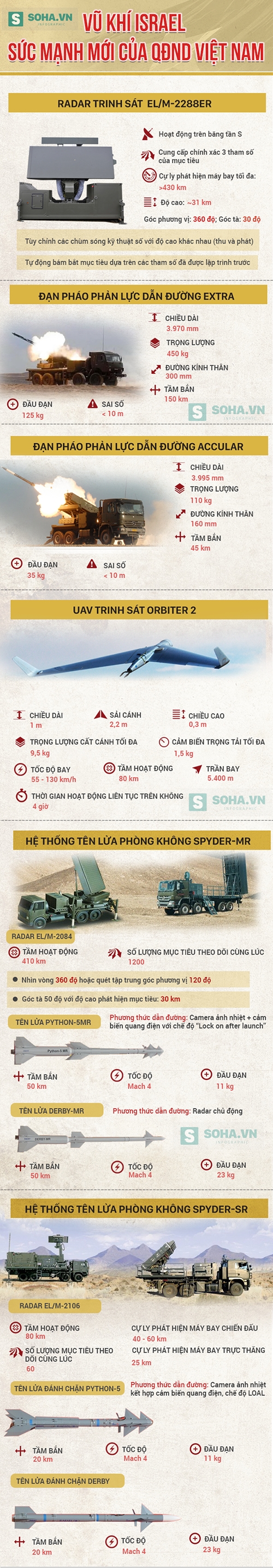 Những vũ khí, khí tài quân sự tối tân do Israel sản xuất dưới đây đã và sẽ sớm có mặt trong biên chế Quân đội nhân dân Việt Nam.