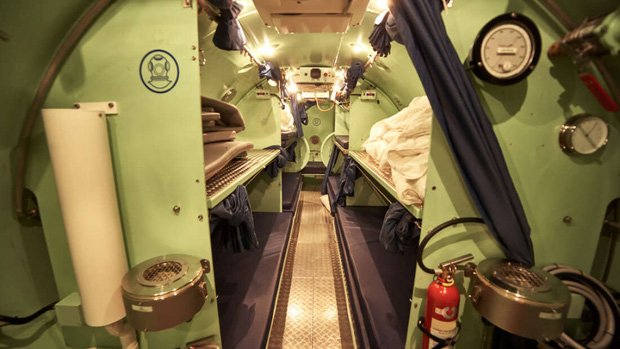 Vậy với những giàn khoan khổng lồ đòi hỏi phải làm việc liên tục dưới đáy biển, làm sao con người tránh được chuyện phải chờ đợi thợ lặn điều chỉnh lại áp suất? Năm 1957, Hải quân Mỹ đã tìm ra một giải pháp hết sức logic: đơn giản chỉ là giữ cho các thợ lặn luôn sống trong môi trường có áp suất lớn, 24/7.
