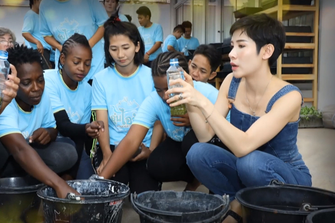 Hoàng quý phi Thái Lan xuất hiện với diện mạo trẻ trung khi tham gia hoạt động cộng đồng. Ảnh: Thai PBS.