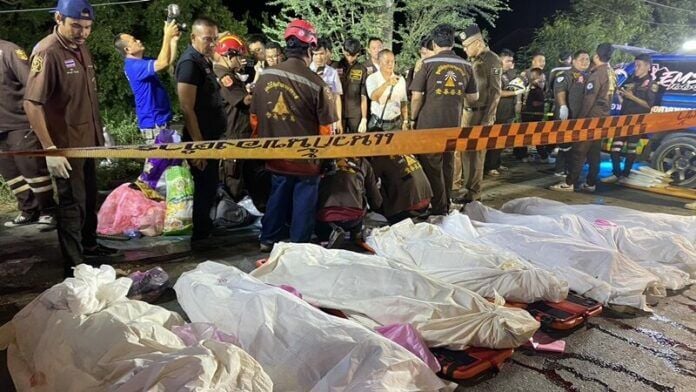 Khi cảnh sát tới hiện trường, họ thấy chiếc xe bán tải đã biến thành một đống sắt vụn méo mó. Hai người đàn ông bị kẹt bên trong xe đều có quốc tịch Myanmar và đều đã thiệt mạng. Trong khi tài xế gục trên ghế lái thì nạn nhân còn lại đang nằm trên thùng xe.
