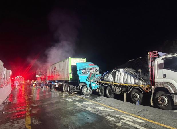 Theo báo cáo, xe buýt đã đâm vào xe tải 12 bánh, khiến xe này đâm vào xe tải 10 bánh phía trước.