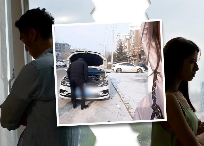 Đoạn video thu hút hơn 400.000 lượt xem trên mạng xã hội. Người vợ ở tỉnh Hắc Long Giang (Trung Quốc) chĩa camera về phía anh chồng trông có vẻ vụng về. Cô giải thích anh đang kiểm tra xem chiếc xe gặp vấn đề gì.