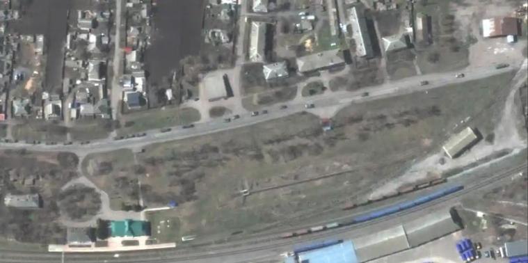 Trong các ảnh vệ tinh do hãng công nghệ vũ trụ tư nhân Mỹ Maxar chụp ngày 8/4, đoàn xe hùng hậu của Nga đang đi qua thị trấn phía đông Kharkiv, gần biên giới của Ukraine với Nga. Theo Maxar, trong đoàn xe Nga có các xe bọc thép, xe tải với pháo kéo và thiết bị hỗ trợ.