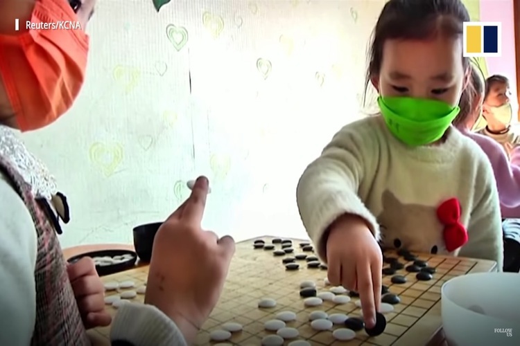 Các em học sinh đang tập đánh cờ vây. Ảnh: Reuters/KCNA