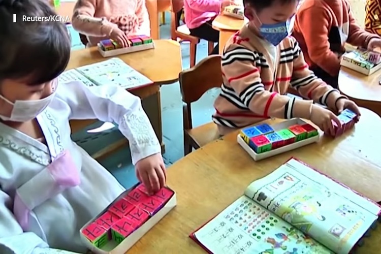 Những hình ảnh sau đây cho chúng ta thấy những hoạt động giúp phát triển trí thông minh dành cho trẻ em mẫu giáo ở Triều Tiên.