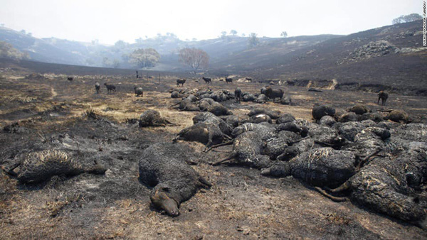 Theo bản năng chúng chỉ có thể chạy đến những nơi an toàn nhưng với tốc độ cháy rừng kinh hoàng này, thậm chí bọn chúng sẽ không còn một nơi nào để trú ẩn nói cách khác là chỉ có một con đường chết hoặc chờ con người đến cứu trong vô vọng.