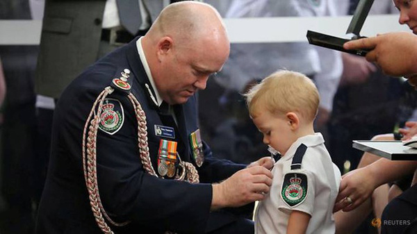 Trước linh cữu của Keaton, Craig Fitzsimmons, Ủy viên Cơ quan Cứu hỏa Nông thôn bang New South Wales, đã quỳ gối và đeo chiếc huân chương lên ngực áo của Harvey.