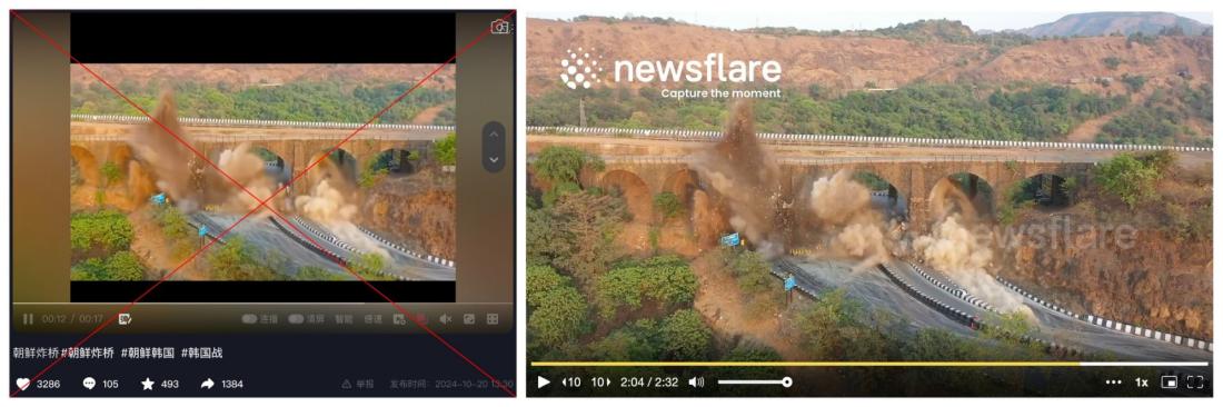 Tuy nhiên, AFP nhận định, những hình ảnh phá hủy cầu đầy kịch tính trong video tổng hợp nói trên không có liên quan đến Triều Tiên.
