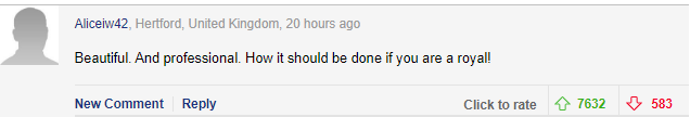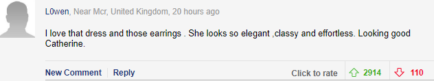 Nhiều người dùng mạng bình luận rằng, trong khi Meghan Markle thiếu chỉn chu trong sự kiện thì Công nương Kate một lần nữa chứng tỏ đẳng cấp vượt trội của mình, trong vai trò là một Hoàng hậu trong tương lai. Bà mẹ 3 con luôn tỏa ra thần thái hút hồn với những bộ trang phục thanh lịch và sang trọng, không nhạt nhòa như Meghan Markle trong chuyến công du vừa qua.