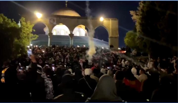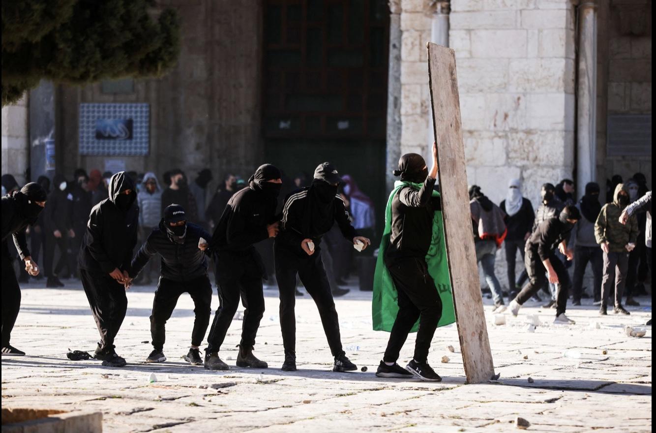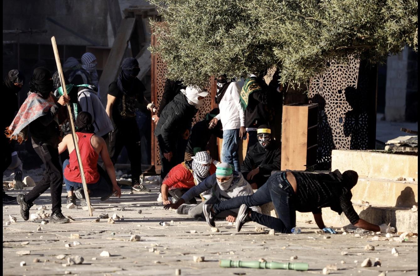 Cảnh sát Israel ra thông báo cho biết, hàng trăm người Israel đã ném pháo và đá vào lực lượng an ninh nước này và về phía khu vực cầu nguyện của người Do Thái ở gần đó - tại Bức tường Phía Tây của Thành cổ sau buổi cầu nguyện sáng Ramadan. Việc này buộc cảnh sát phải vào khu phức hợp Al-Aqsa để giải tán và đẩy lùi đám đông, tạo điều kiện cho những người cầu nguyện còn lại rời nơi này an toàn. Có ba cảnh sát Israel bị thương trong các vụ đụng độ.