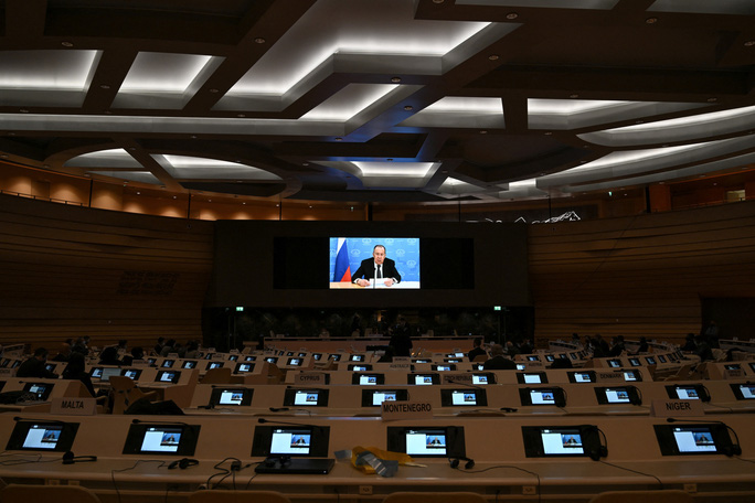 Ông Lavrov đã có bài phát biểu trực tuyến tại hội nghị ở TP Geneva-Thuỵ Sĩ trước các nhà ngoại giao đến từ Liên minh châu Âu (EU), Mỹ và Anh. Các nhà ngoại giao đã đứng dậy và rời khỏi phòng trong hành động phản đối việc Nga tấn công Ukraine.