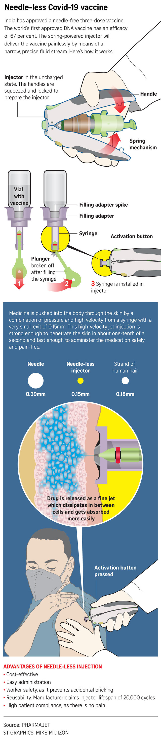 Vừa qua, tờ The Straits Times (Singapore) đưa tin, Ấn Độ đã thông qua sử dụng khẩn cấp vaccine DNA đầu tiên của thế giới trong tháng 8. Vaccine DNA này có tên ZyCoV-D do công ty Ấn Độ Zydus Cadila sản xuất. ZyCoV-D không cần kim tiêm và được Ấn Độ thông qua sử dụng khẩn cấp cho người trưởng thành cũng như trẻ em trên 12 tuổi. Bên cạnh đó, ZyCoV-D cần được tiêm 3 mũi.