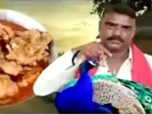 Video cho thấy anh ta nấu cà ri thịt chim công, "được cho là để thu hút sự chú ý của người dùng mạng internet," tờ The Times of India đưa tin.