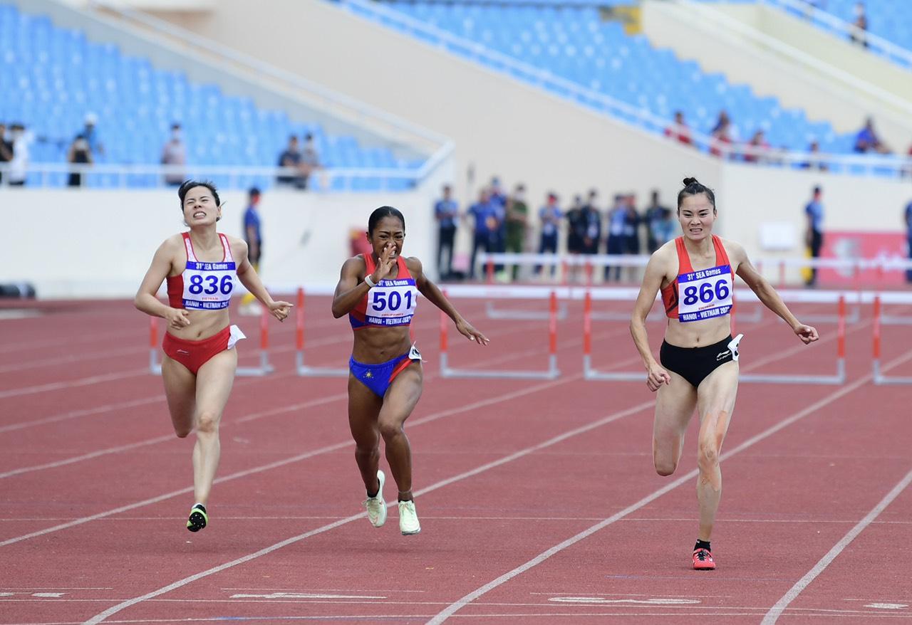 Tuy nhiên, hôm nay tôi đã giành được HCV thì điều này cũng chứng tỏ được rằng bản thân tôi không kém đàn chị. Ngày hôm nay, tôi đã cố gắng chiến đầu để vượt qua bản thân. Chạy rào là sở trường của tôi, vì vậy áp lực lớn nhất chính là bản thân mình".