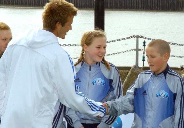 Ai mà ngờ được, hai cô, cậu bé được Beckham khoác vai đó tương lai sẽ trở thành vợ chồng.