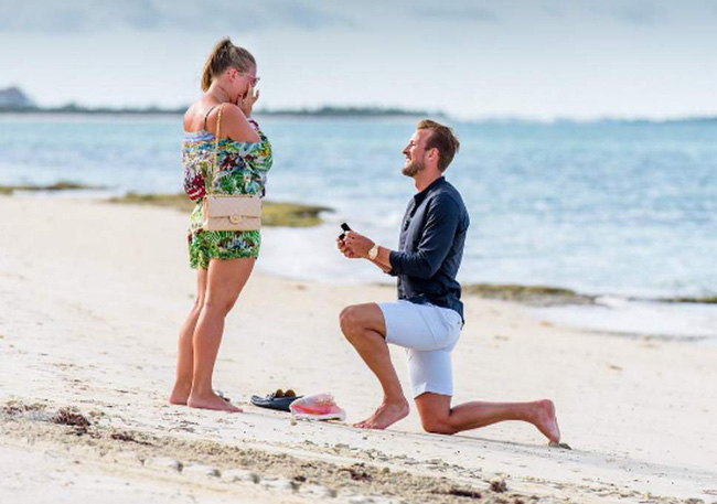 2 năm sau đó, sau khi Kate hạ sinh con gái đầu lòng - bé Ivy thì Kane đăng bức hình cầu hôn bạn gái ở bờ biển Bahamas đầy lãng mạn.