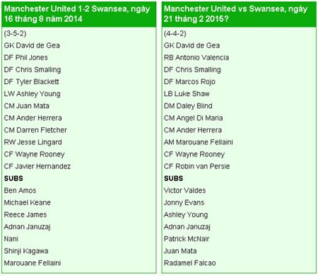 Tờ Daily Mail tính toán rằng, so với trận lượt đi, M.U có thể có tới 7 sự thay đổi ở cuộc tái đấu với Swansea. Điều này nói lên rất nhiều thứ mà trước hết, những thay đổi đó cho thấy Quỷ đỏ đã khác nếu so với màn trình diễn tệ hại của Quỷ đỏ ở trận thua 1-2 ngay tại Old Trafford trong ngày khai màn Premier League trước chính đối thủ này.