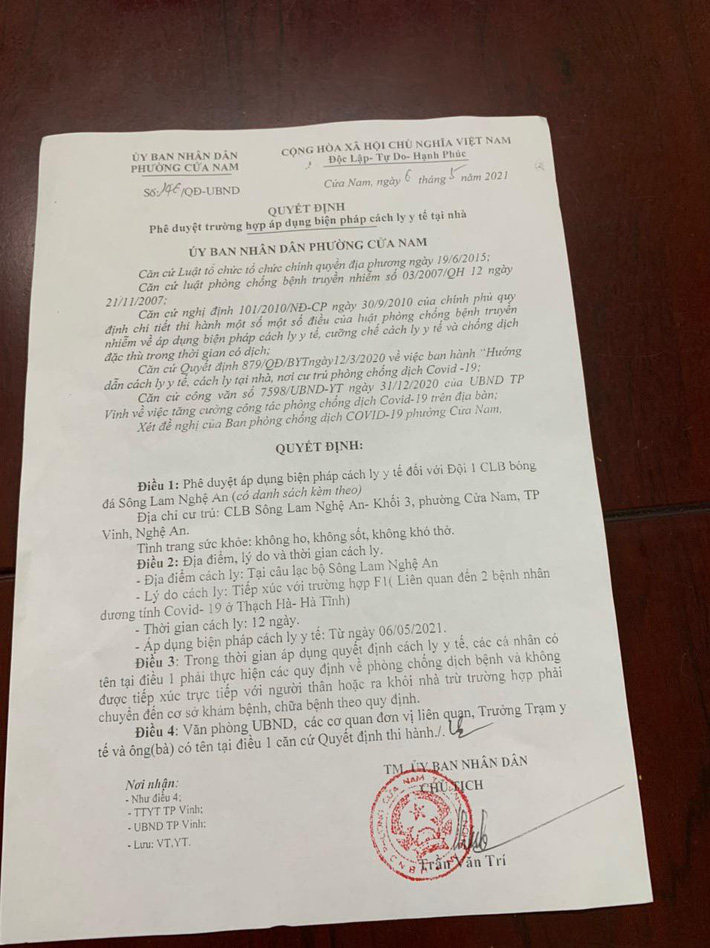 Theo quyết định mới được lãnh đạo địa phương công bố, toàn đội sẽ cách ly ngay tại đại bản doanh trong thời gian 12 ngày, kể từ ngày hôm nay (6/5).