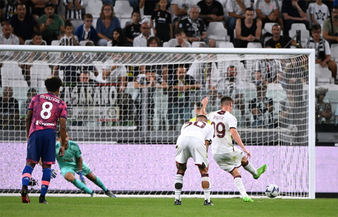 Trong lúc Juventus vẫn loay hoay trong việc tìm kiếm đường vào khung thành thủ môn Sepe thì bất ngờ khác lại đến ở những phút bù giờ của hiệp 1, khi trung vệ Bremer để tay chạm bóng trong vòng cấm và Krzysztof Piatek tận dụng tốt cơ hội trên chấm 11m để có được bàn thắng nhân đôi cách biệt ở phút 45+5.