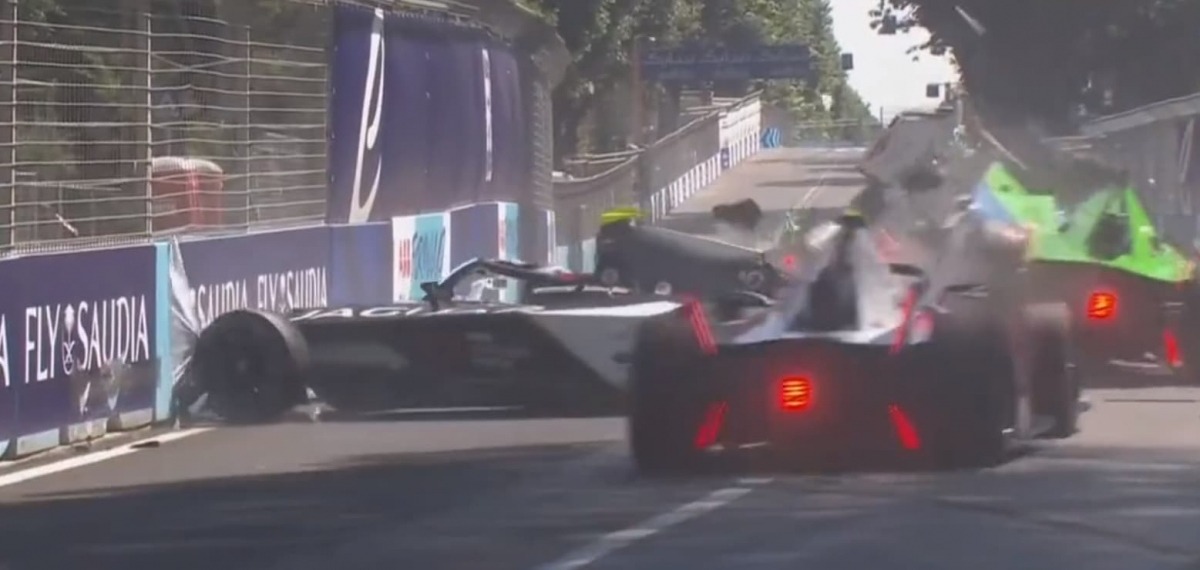 Vụ tai nạn liên hoàn xảy ra ở chặng đua Rome Grand Prix trong khuôn khổ giải Formula E. Tổng cộng 6 xe đã đâm vào nhau ở tốc độ rất cao, nhưng may mắn không có thương vong.