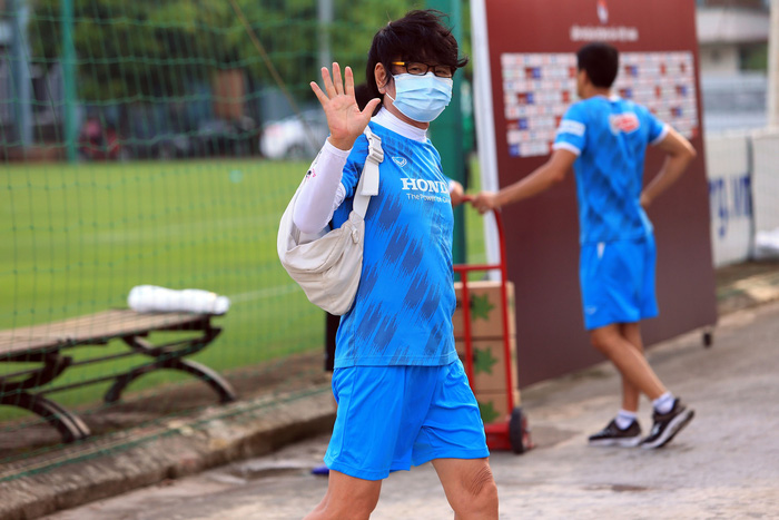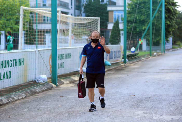 Phải đến khi các cầu thủ hoàn thành bài tập thể lực HLV Park Hang-seo mới di chuyển xuống sân, ông cũng nhắc nhở truyền thông rời khỏi khu vực tác nghiệp vì đã quá 20 phút.