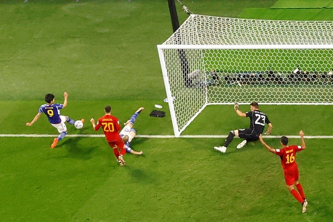 Nhật Bản đánh bại Tây Ban Nha 2-1 nhờ bàn thắng quyết định của Ao Tanaka, xuất phát từ nỗ lực của Kaoru Mitoma mà dường như bóng đã đi hết biên ngang. Trọng tài đã tham vấn VAR qua màn hình khá lâu trước khi đưa ra phán quyết có lợi cho Nhật Bản. Người ta cho rằng bóng vẫn có một phần đường cong chu vi chưa đi qua hết vạch vôi.