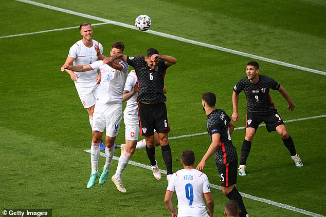 Trong khi hàng tấn công vẫn chưa thể ghi bàn vào lưới CH Séc, thì ở phút 36 Dejan Lovren lại tương nguyên cả cái cùi chỏ vào mặt Patrik Schick. Sau khi tham khảo VAR khá lâu, trọng tài Carlos Del Cerro quyết định thổi 11m cho CH Séc.