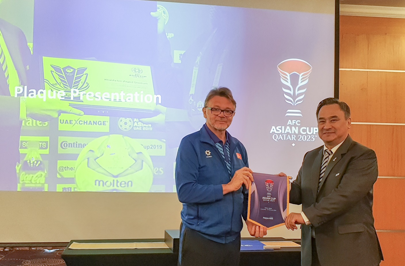 08/01/2024 14:45AFC tổ chức cuộc họp đặc biệt, tuyển Việt Nam hào hứng chụp ảnh truyền thông Asian Cup
