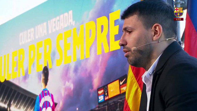 Hầu hết thành viên Barca có mặt trong buổi họp báo chia tay sân cỏ của Aguero. Đại diện của Atletico và tuyển Argentina cũng xuất hiện, nhưng không có đại diện Man City tham dự. Aguero không ngừng khóc từ trước khi cất lời. Chủ tịch Barca, Joan Laporta động viên anh bằng cách kêu gọi mọi người dành tặng chân sút Argentina tràng pháo tay.