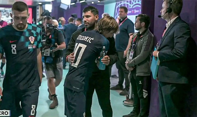 Khi tiếng còi kết thúc trận đấu vang lên, Luka Modric lặng lẽ đi vào với những bước chân trĩu nặng. Anh không giấu được nỗi buồn trên gương mặt. Nhưng đúng thời điểm đó, Ống kính truyền hình bắt được khoảnh khắc cực đẹp khi Aguero theo Modric vào tận đường hầm chỉ để dành cho đội trưởng Croatia những lời động viên an ủi.