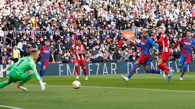 Siêu phẩm của Alba giúp tinh thần của các cầu thủ Barca dâng lên rất cao. Họ dồn ép Atletico nghẹt thở và ghi được bàn thắng thứ 2 ở phút 21. Sau nỗ lực đột phá và tạt bóng của Traore từ cánh phải, tiền vệ trẻ Gavi bật cao đánh đầu tung lưới Atletico.