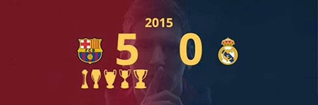 21/12/2015 18:19ẢNH CHẾ: Barca 5 cúp, Real 0 cúp, một "cái tát" cho Real trong năm 2015