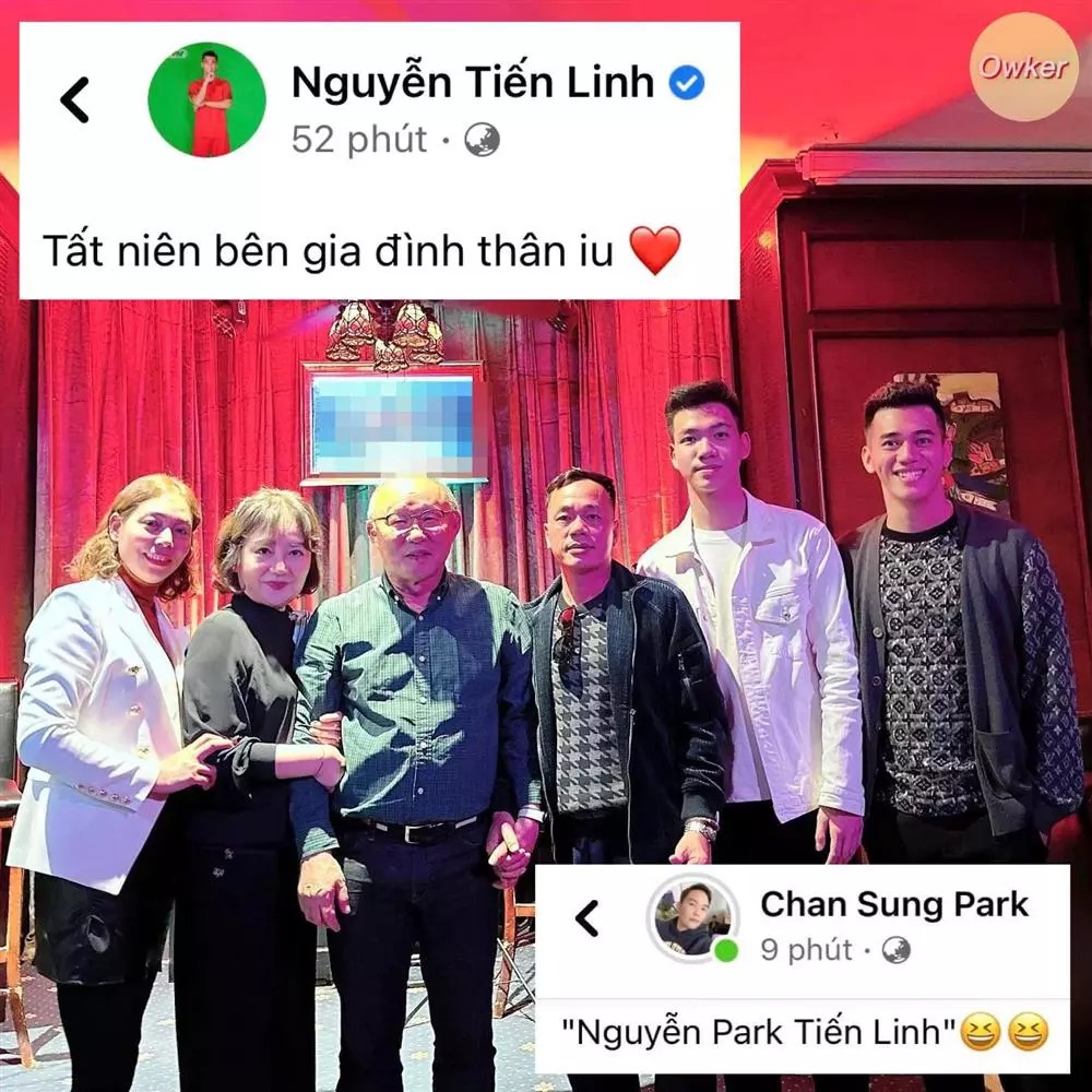 Cũng từ hình ảnh này cho thấy thầy Park cưng Tiến Linh quá đi thôi. Ngay cả con trai HLV Park khi thấy bố chụp ảnh cùng học trò cũng vào trêu rằng: "Nguyễn Park Tiến Linh".