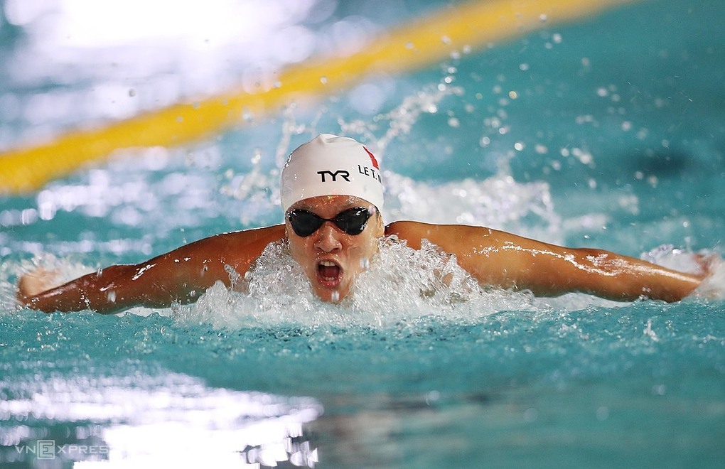 Bể bơi Phú Thọ tối qua còn chứng kiến màn so tài sôi động nội dung 200m bướm nam với loạt tuyển thủ quốc gia Duy Khôi, Duy Khoa, Huy Hoàng, Kim Sơn, Hưng Nguyên..., trong đó, Huy Hoàng đang giữ kỷ lục quốc gia nội dung này với thời gian 1 phút 59 giây 59.
