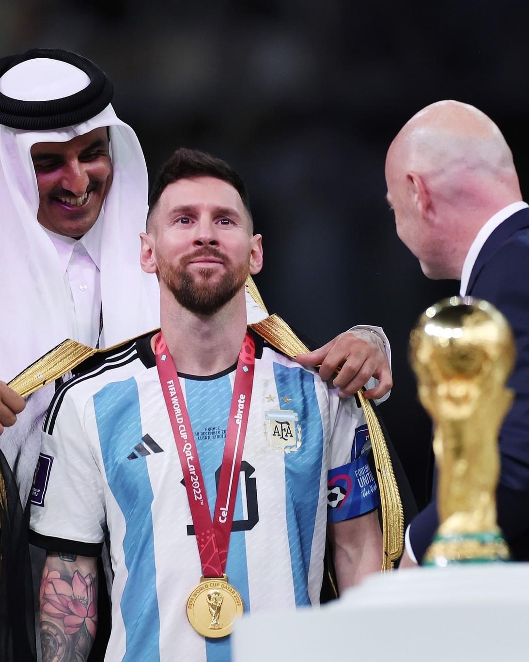 Trước sự hiếu kỳ của đông đảo người hâm mộ thế giới, Hassan Al Thawadi (Tổng thư ký Ủy ban Tổ chức World Cup 2022) nói về chiếc áo của Messi: “Đó là trang phục chính thức sử dụng cho các lễ kỷ niệm tại Qatar. Đây là hành động để tôn vinh Lionel Messi.
