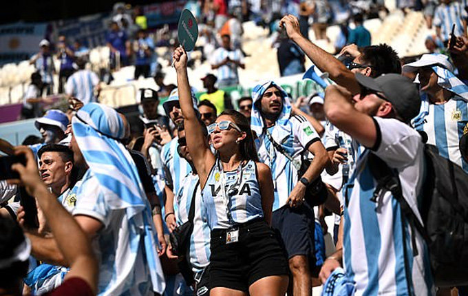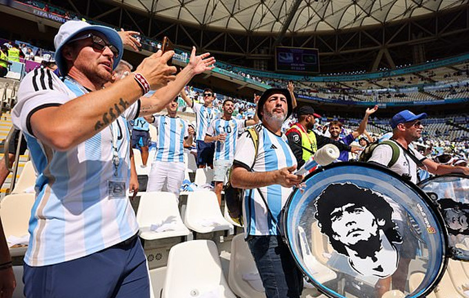 Các cổ động viên của Saudi Arabia đang tạo nên bầu không khí vô cùng sôi động trên sân Lusail Iconic