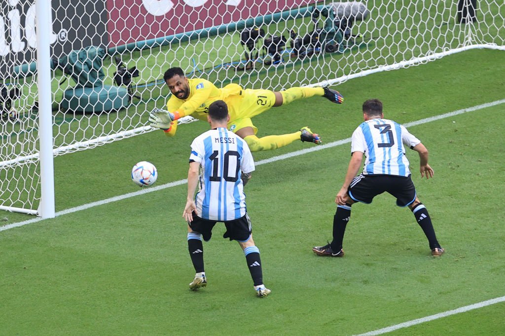 3': KHÔNG VÀO!!! Sóng gió đã nổi lên bên phần sân của Saudi Arabia. Messi ra chân rất nhanh sau một tình huống tấn công bên cánh phải khiến thủ thành Al-Owais phải tung người hết cỡ cản phá.