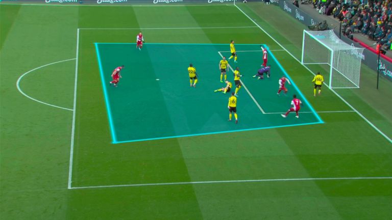 Dù trung vệ đối phương có xử lý như thế nào, hay các tiền vệ có lùi xuống và giúp đỡ, thì Arsenal vẫn tạo ra một khoảng trống rất lớn ở giữa hàng thủ. Bàn đầu tiên của Odegaard vào lưới Watford chính là một pha giàn xếp tiêu biểu của Arsenal, nơi 5 cầu thủ có mặt trong vòng cấm đối thủ.