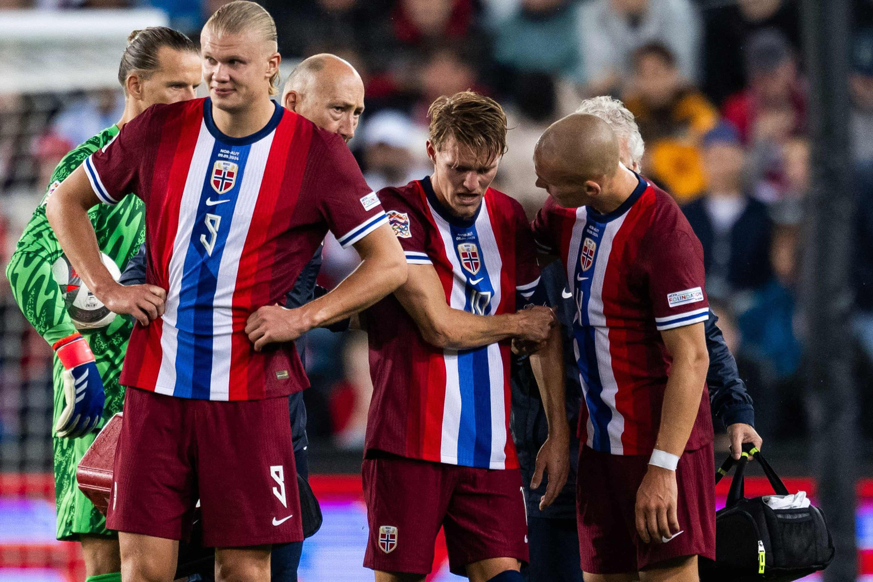 Ola Sand, bác sĩ của đội tuyển Na Uy, tiết lộ rằng kết quả chụp MRI cho thấy Odegaard không bị gãy xương, nhưng anh vẫn có khả năng phải ngồi ngoài cho đến hết tháng 9.