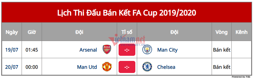 18/07/2020 15:55Arsenal vs Man City: Đại chiến lấy vé chung kết FA Cup