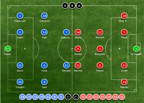 Atletico: Oblak, Vrsaljko, Savic, Godin, Luis, Carrasco, Niguez, Gabi, Koke, Gameiro, Griezmann