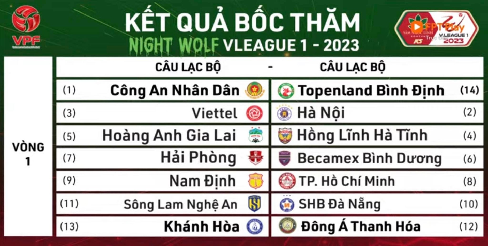 Chính điều này đã tạo ra cặp đấu vô cùng hấp dẫn ngay lượt trận đầu tiên khi đương kim vô địch Hà Nội chạm trán Viettel. Trong khi đó, Công an Nhân dân sẽ gặp thách thức lớn khi tiếp đón Topenland Bình Định.