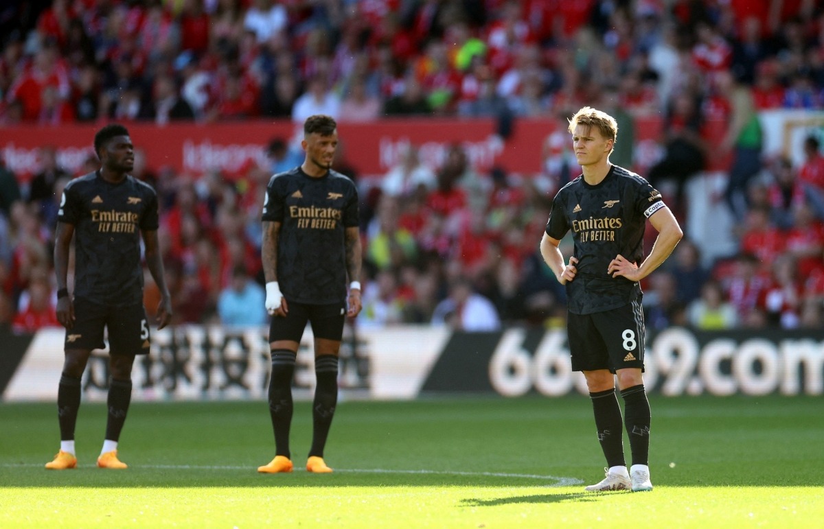 Được đánh giá cao hơn đội chủ nhà, đoàn quân của HLV Mikel Arteta nhanh chóng chiếm quyền kiểm soát thế trận. Dù vậy, đội khách lại bất ngờ để thủng lưới trước. Phút thứ 19, Odegaard bất cẩn chuyền bóng thẳng vào chân Gibbs-White giúp Nottingham Forest có cơ hội phản công. Awoniyi sau đó nhận bóng và ghi bàn mở tỷ số cho đội chủ sân City Ground.